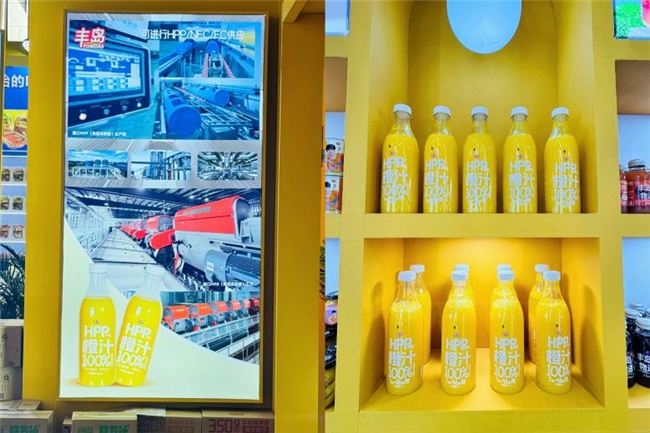 创新不止,步履不停。本届展会上,丰岛食品在明星产品线广受欢迎的同时,重磅亮相的全新HPP果汁系列成为又一焦点。这再次彰显了品牌深耕健康水果赛道的坚定决心。2025年3月投产的年产3万吨果汁项目,涵盖HPP柑桔汁、NFC柑桔(橙)汁、柑桔(橙)浓缩汁、橙汁等系列产品,为丰岛持续创新注入强劲动能。紧扣消费者对健康饮品的升级需求,丰岛以更高标准打磨产品,致力带来更纯粹的鲜果本味。凭借“用技术锁住自然甜”的工艺创新,此次展出的HPP橙汁充分展现了丰岛在非热加工、冷杀菌等前沿技术领域的突破。从原料到舌尖,每一步都力求新鲜纯粹,只为满足消费者对健康、便捷、高品质饮品的日益增长之需。